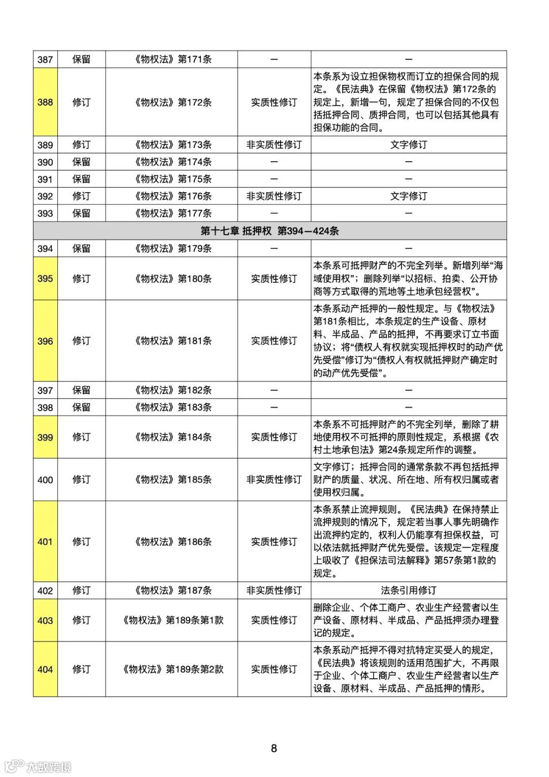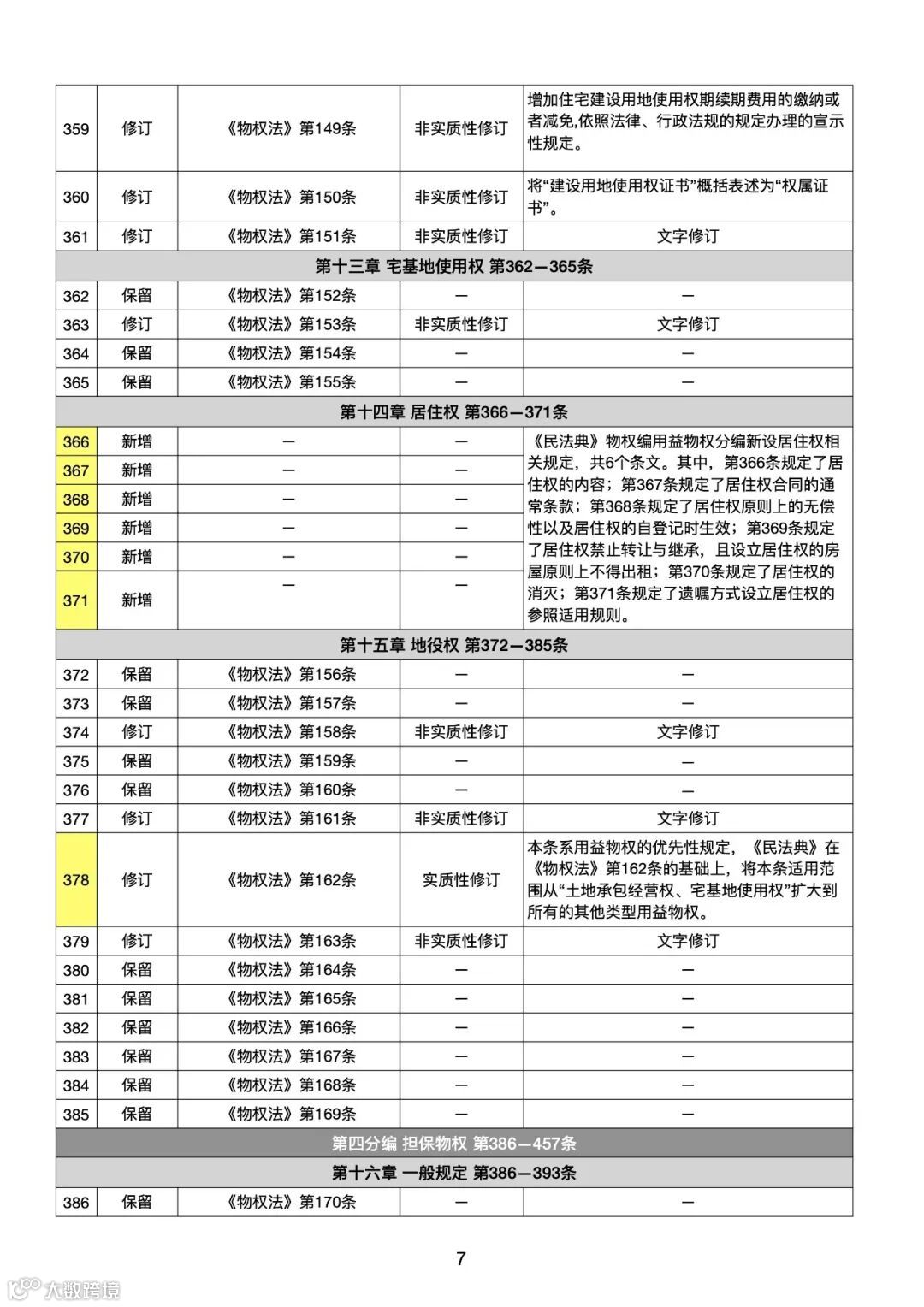 最后,有12个法条系本次《民法典》新增,主要为新设居住权这一新类型的用益物权的相关规定,此外,在抵押权部分也有少数新增条文。