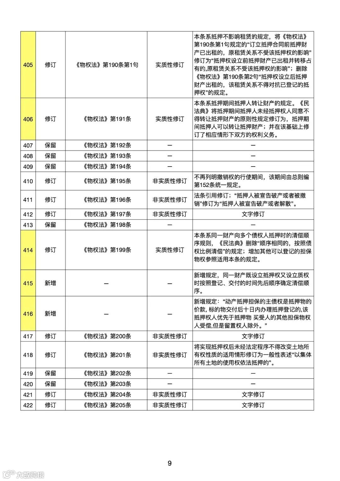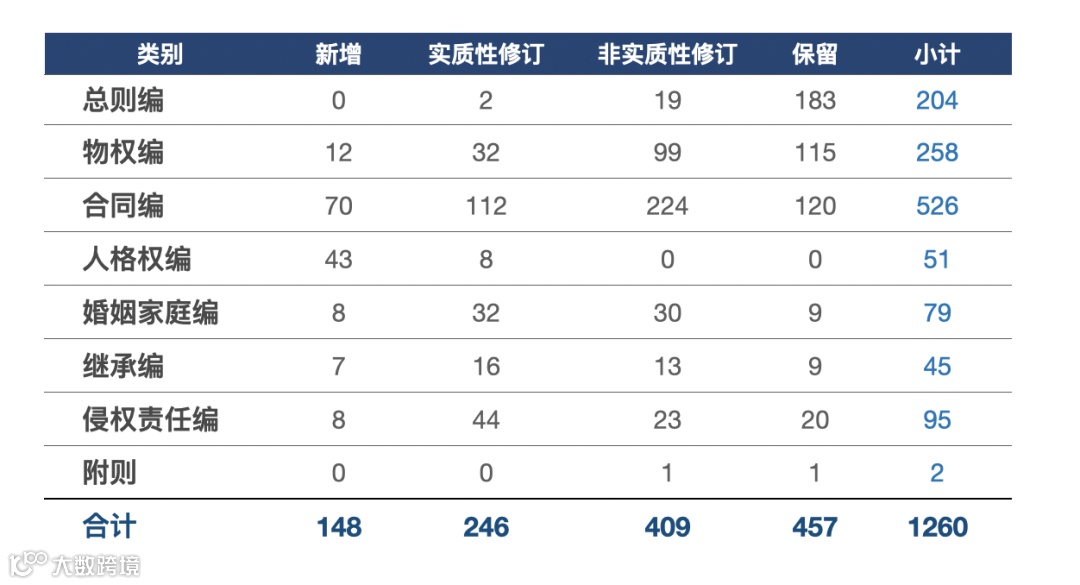 (二)《民法典》1260个条文中,约有409个条文系对现行法及相关司法解释作“非实质性修订”而来,占比约为32.5%