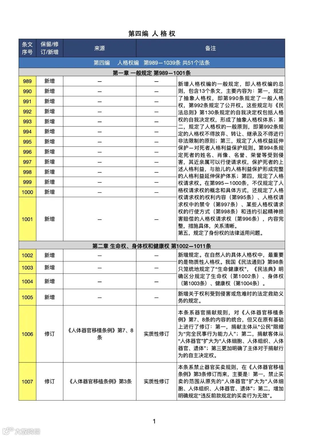 人格权编共51条,43条新增、8条实质性修订、0条非实质性修订、0条保留;