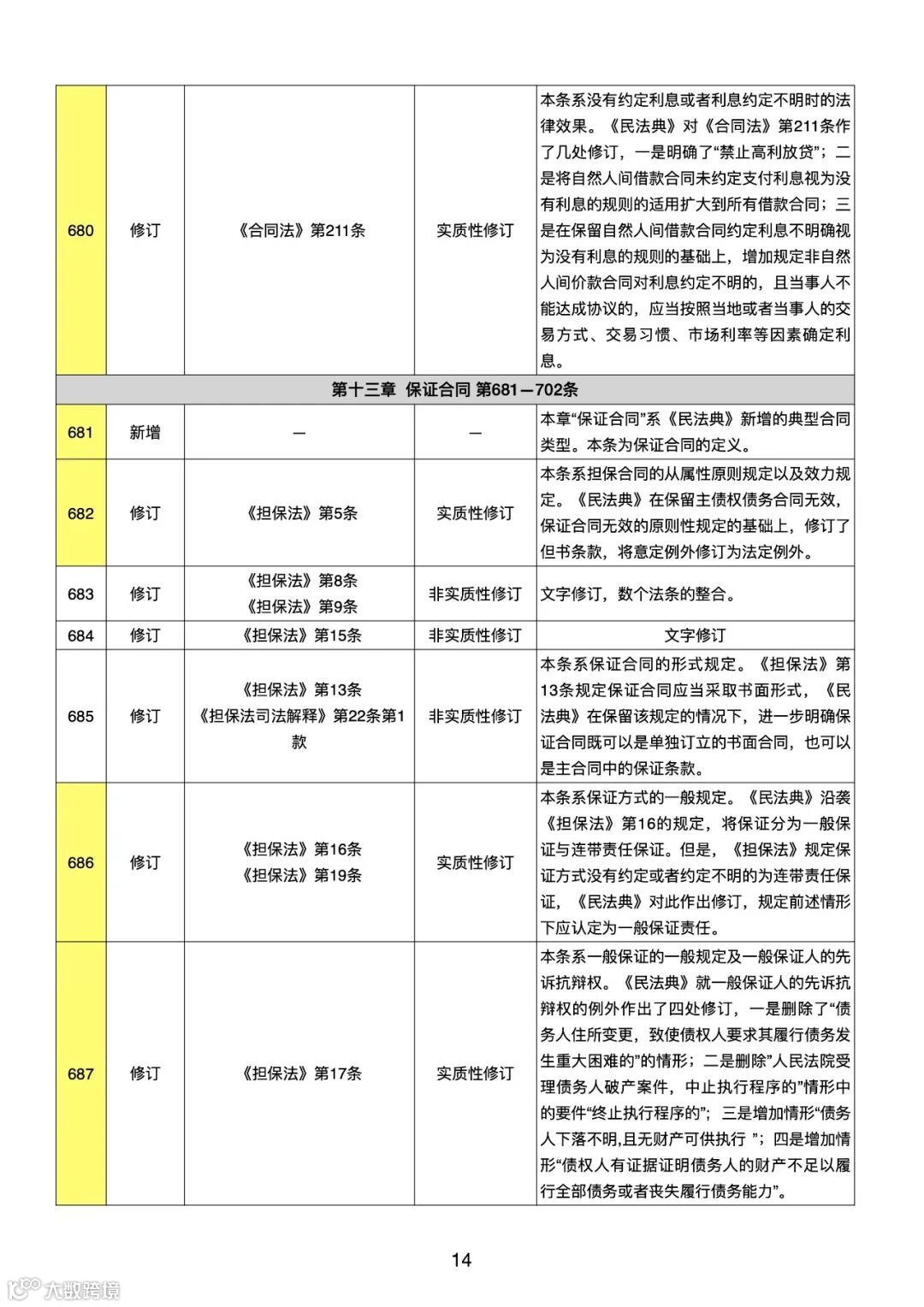 例如,《担保法》第19条规定,“当事人对保证方式没有约定或者约定不明确的,按照连带责任保证承担保证责任。”《民法典》第686条第2款将该规定修订为“当事人在保证合同中对保证方式没有约定或者约定不明确的,按照一般保证承担保证责任。”