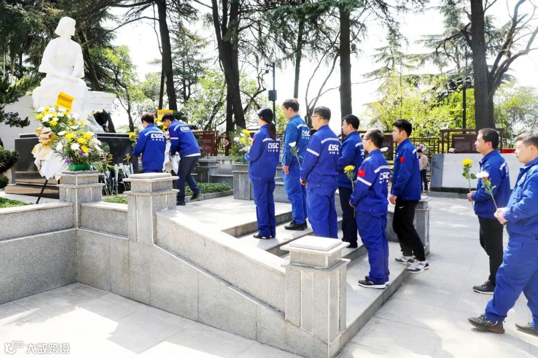 3月31日,重装公司组织机电工程部党支部党员来到石门峰抗战纪念园,向沉眠在园内的抗日英烈敬献鲜花。
