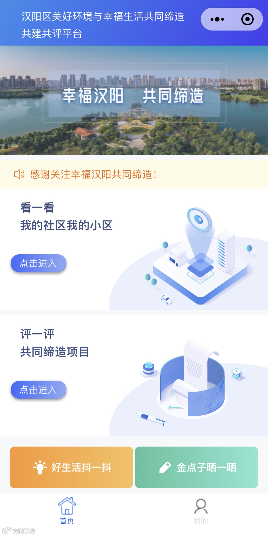 “幸福汉阳 共同缔造”小程序是面向用户群体开发的,集展示、评价、互动、报事等多功能于一体,主要目的是通过打造共建共评的线上平台,凝聚共同缔造的强大合力。目前该程序已经链接到汉阳区官方微信公众号“汉阳知音”上面,用户可直接点击使用。