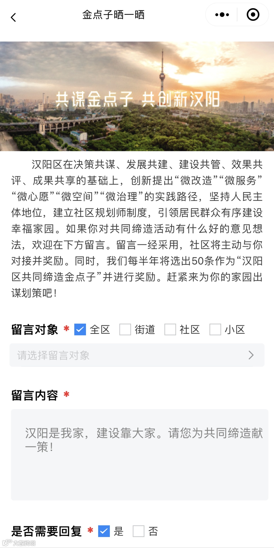 “幸福汉阳 共同缔造”小程序部分页面展示