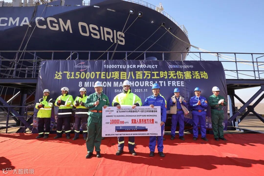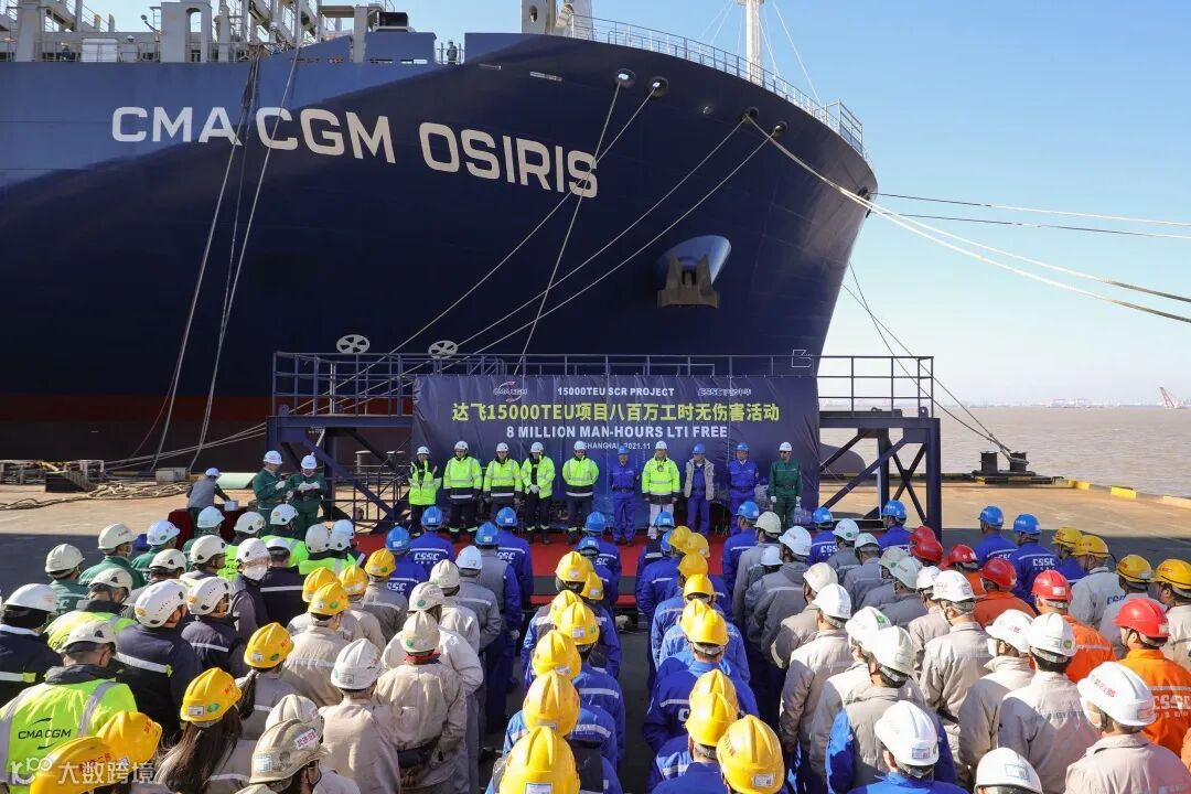 船东建造组组长 Goran.Talevski表示,达飞公司始终将安全至上作为企业核心价值,致力于推动和规范项目施工安全管理。在沪东中华HSE部门和参建人员的共同努力下,15000TEU项目建造团队秉持精益求精的“工匠精神”,安全优质高效制造,成功实现了“达飞·和风”、“达飞 ·赫尔墨斯”姊妹船的高质量交付。他期望公司继续提升HSE管理水平,并预祝15000TEU项目在全部完工前保持无损失工时事故的纪录。