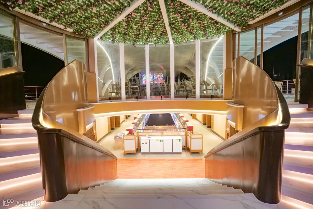 一楼二楼分别配备了超大LED屏,以及演唱会级别的音响灯光演绎设备,将会给登船的游客带来一场极具震撼的视听盛宴。
