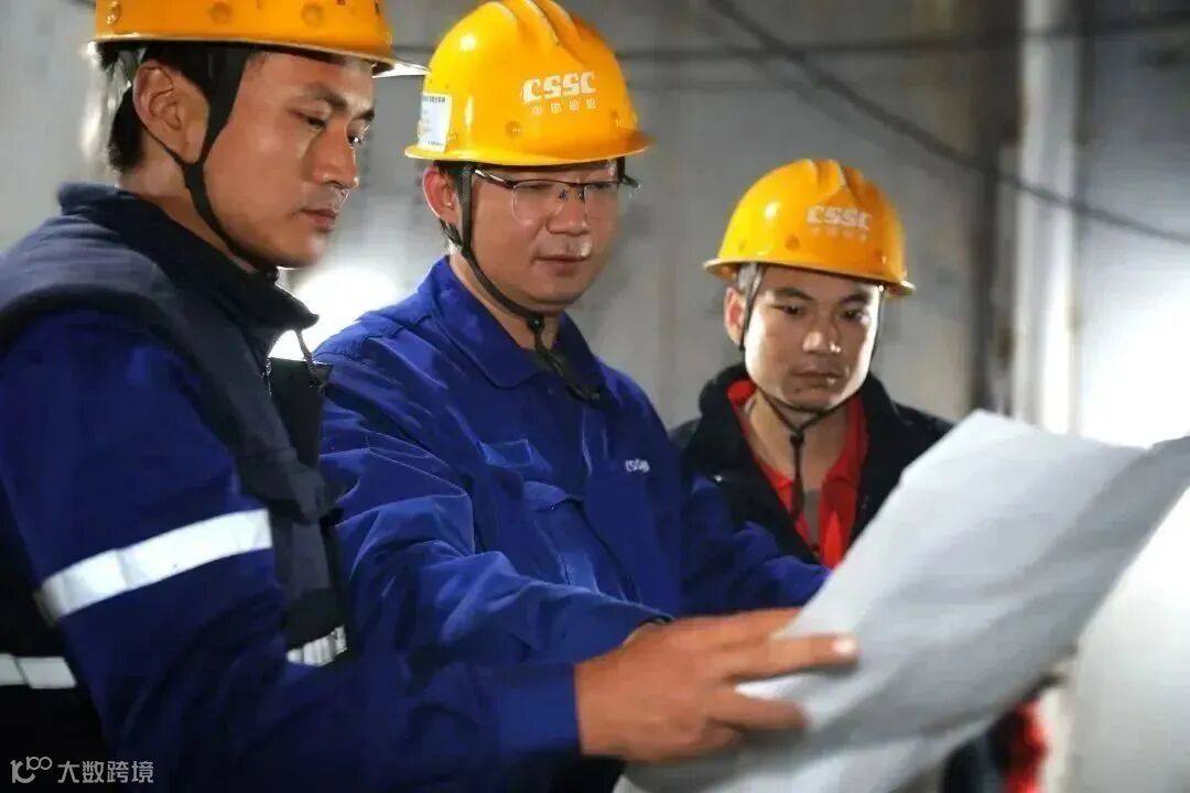 连续多天夜晚,船台重点产品上灯火通明,装配二组的组员们在进行一项“大动作”——要将两个立体分段采用无马装配的方式进行对接,且误差要控制在毫米之间。