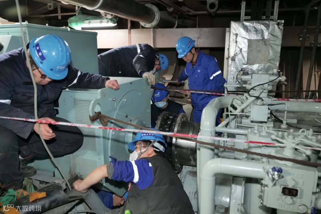 ▲ 第一排为机装车间船舶钳工进行轴系对线