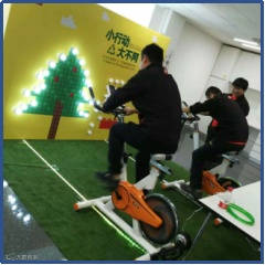 动感单车结合发电机组,用力蹬踩点亮灯组。