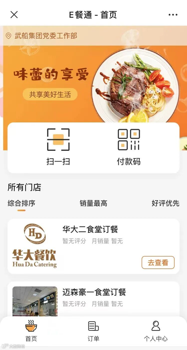 一是武船公众号-智慧食堂