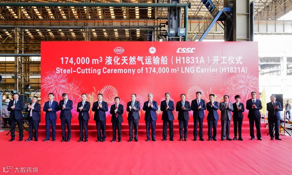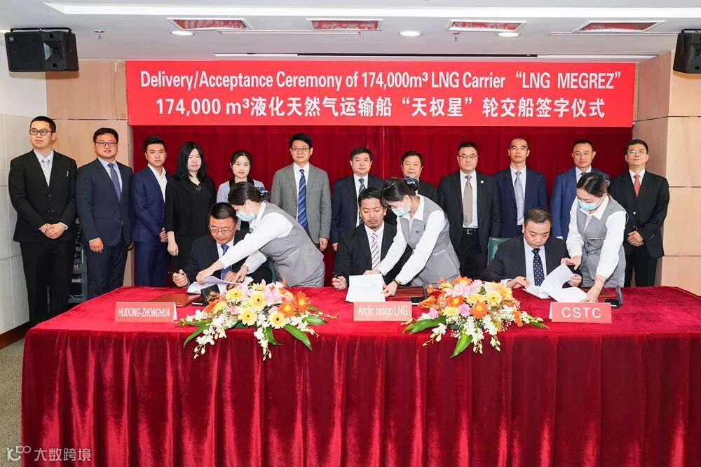 亚马尔LNG运输船项目的收官之作“天权星”轮当天交付。该船总长295米,船宽45米,型深26.25米,航速19.5节,是全球第四代XDF双燃料推进17.4万方LNG船。