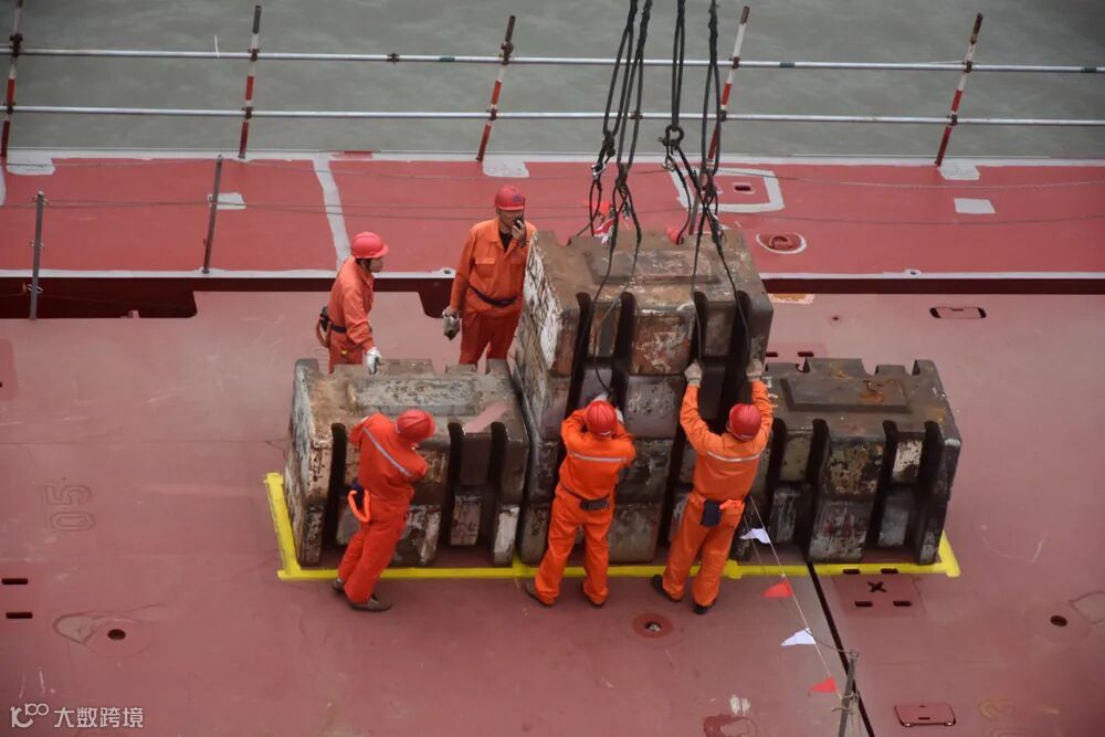 倾斜试验对登船人数有严格限制,能够参加试验的员工都牢记个人职责,各司其职,全身心投入试验过程。起重人员在码头吊车帮助下按次序移动压铁到划定位置,检测人员认真读取记录试验数据……经过四小时的辛勤工作,倾斜试验圆满结束。