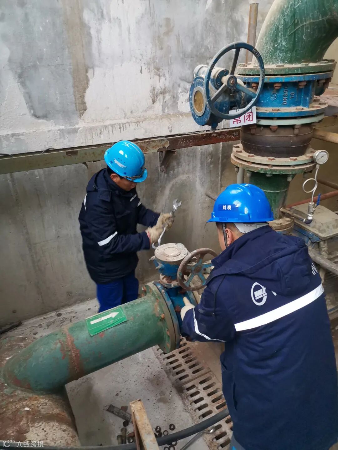 300立方空压机的水泵出口止回阀是DN300的大型阀件,拆除和安装难度较大,需要吊车与人通力配合,借行车的拉力和人抬的力量找好位置才能拆除和安装螺栓。放假的第一天,寒风凛冽,雪花纷飞。即便戴着手套,大家还是感觉手脚冰冷,拿着扳手的手都没办法完全使上力。可是没有人放弃,大家迎难而上,通力合作。