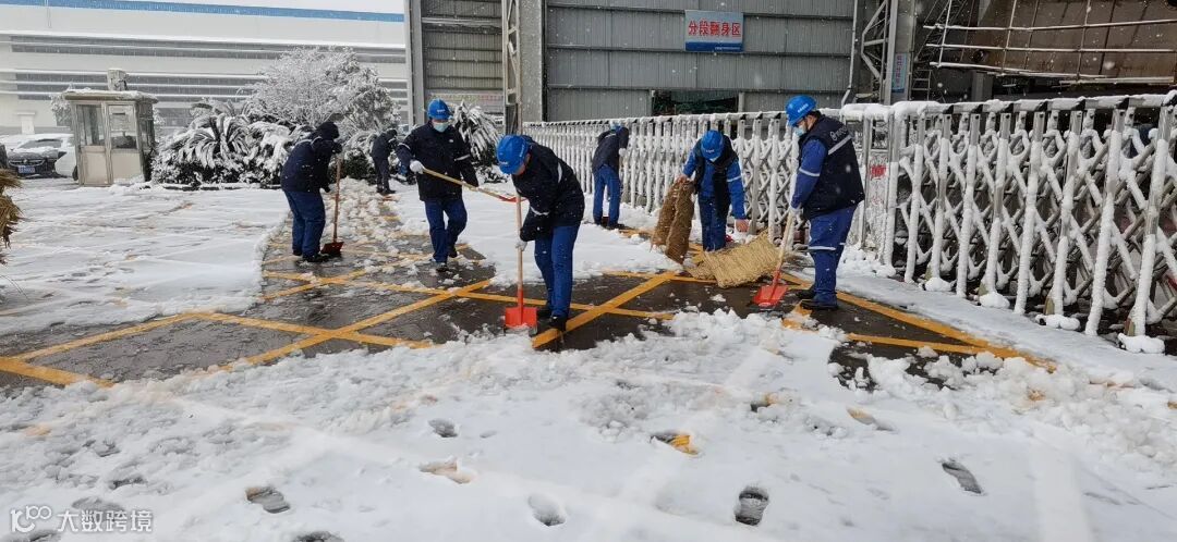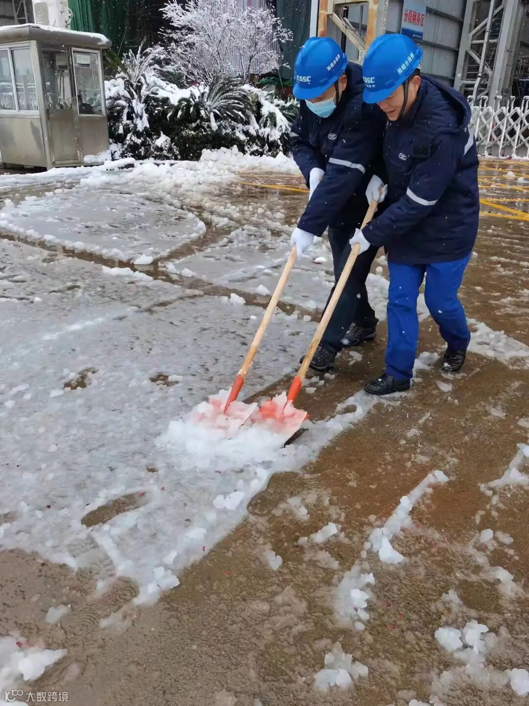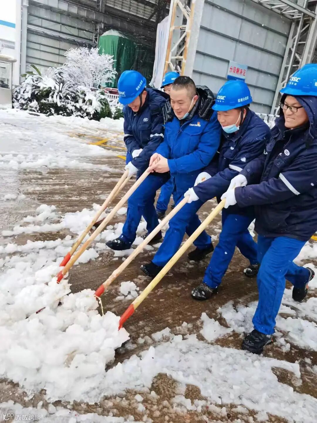 加班的同志们,一边用十足的创意享受美丽雪景带来的喜悦,一边通力协助,清扫除雪,防滑防摔,保障道路和生产区域安全生产。