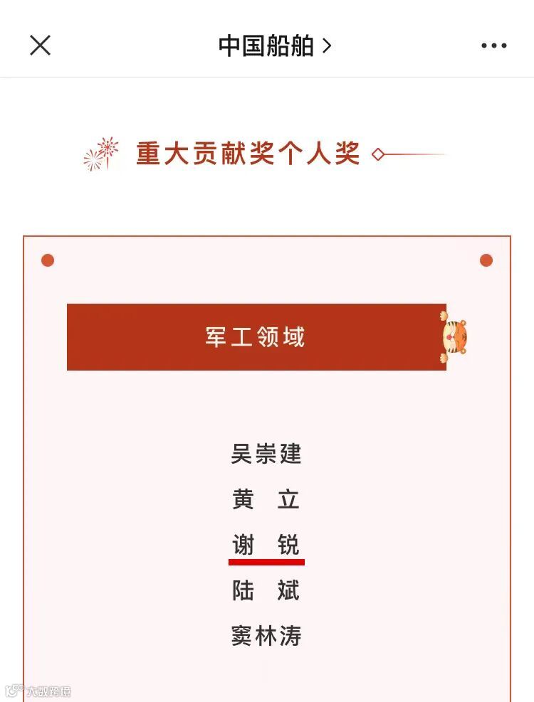 谢锐,现任武船集团设计研究院副主任。2021年,谢锐同志在推动重点产品节点实现,尤其是产品交付方面做出了卓有成效的工作。