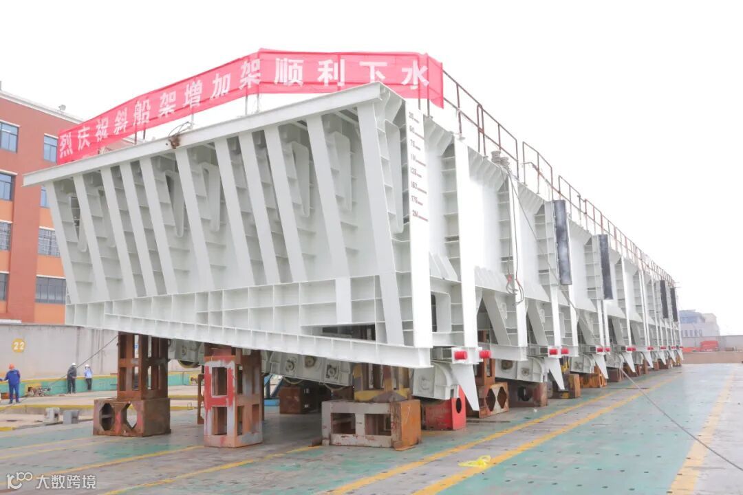 武船集团下水滑道斜船架扩建项目“斜船架增加架”主体结构架1和架2于3月18日、3月23日分别在双柳基地顺利下水并落轨,进入安装调试阶段。