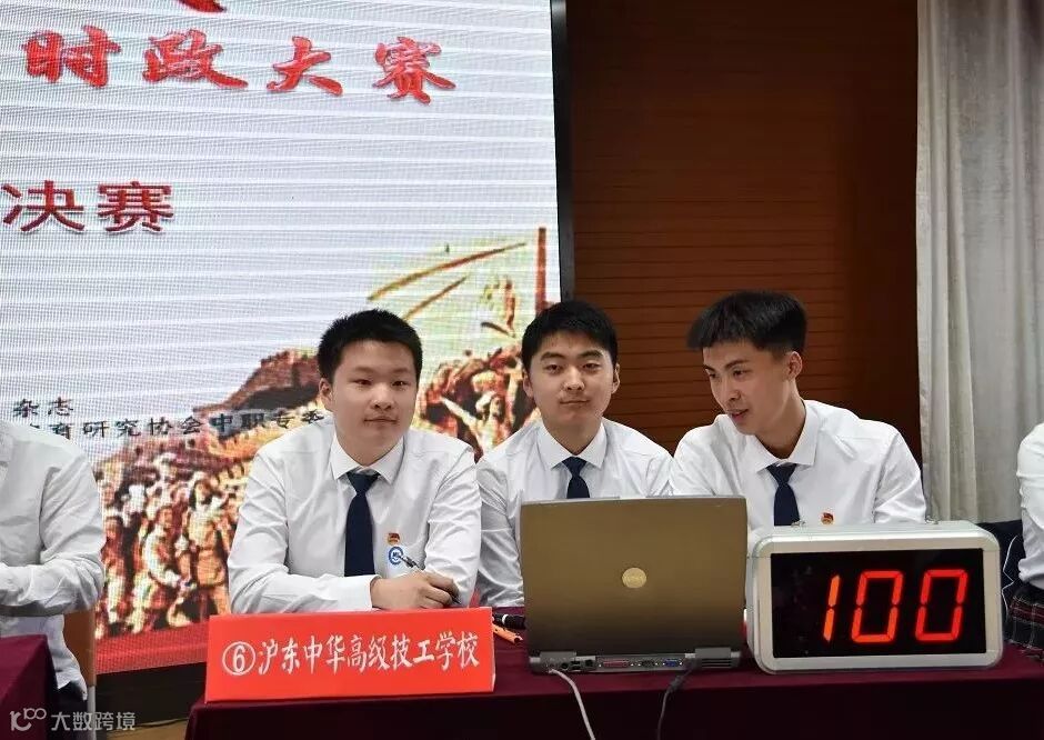 上海市中学生时政大赛已经经过了16年,今年沪东中华高级技校在全市70多所中职校中名列前茅,有16名学生进入时政大赛决赛,其中2人获一等奖,4人获二等奖;5人获三等奖,创造了沪东中华高级技校参加此类比赛的最好成绩。因为有个人赛的积分,学校如愿进入上海市中职校八强,于5月27日下午在上海市商业学校进行了时政知识团体决赛。团体赛分为共答题、读图题、论述题和抢答题四个环节。经过2小时激烈角逐,沪东中华高级技校4名选手齐心协力、团结拼搏,最终获得团体铜奖。