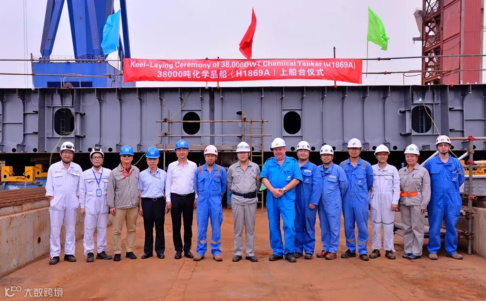 9月10日,新型38000吨双相不锈钢化学品2号船举行上船台仪式,基准分段CB04-HB01顺利吊装到位。