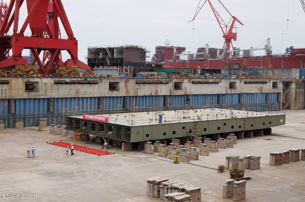 6月17日下午,22000箱3号船半船总段30A在长兴造船2号船坞下坞搭载,标志着2个船坞生产联动正式拉开序幕。