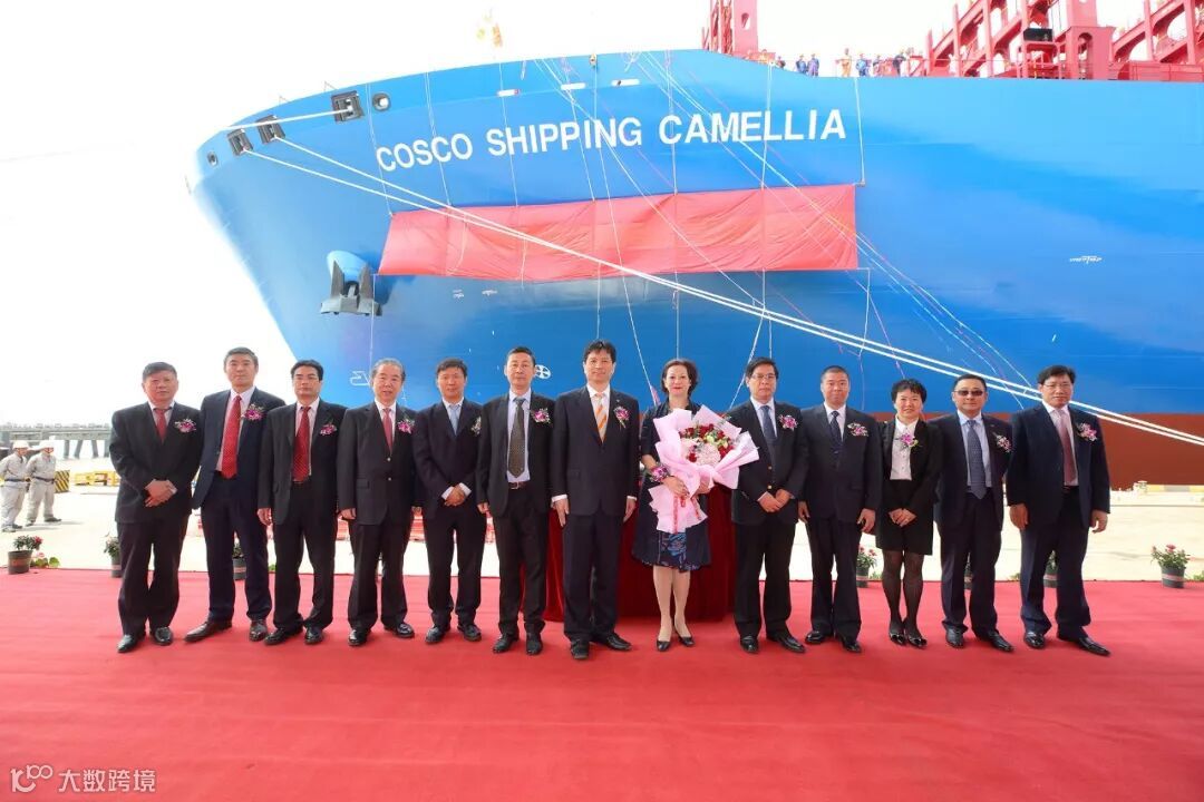 中远海运集运副总经理辜忠东、中船贸易亚太区总经理阳宇和沪东中华常务副总经理、长兴造船总经理黄一平共同签署了交船文本。教母刘岚女士命名新船为“中远海运山茶”号并砍缆敲香槟。