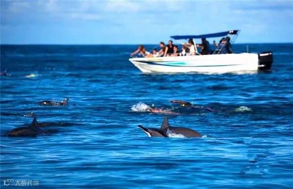 在毛里求斯,最惊喜的莫过于出海看海豚了,海豚湾是毛里求斯海水最纯净的地方,这里的海中精灵们惬意地生活在这里,吞吐着海水,它们时而来个漂亮的空前翻,时而悄然列队出现在你的船边,无比呆萌可爱。