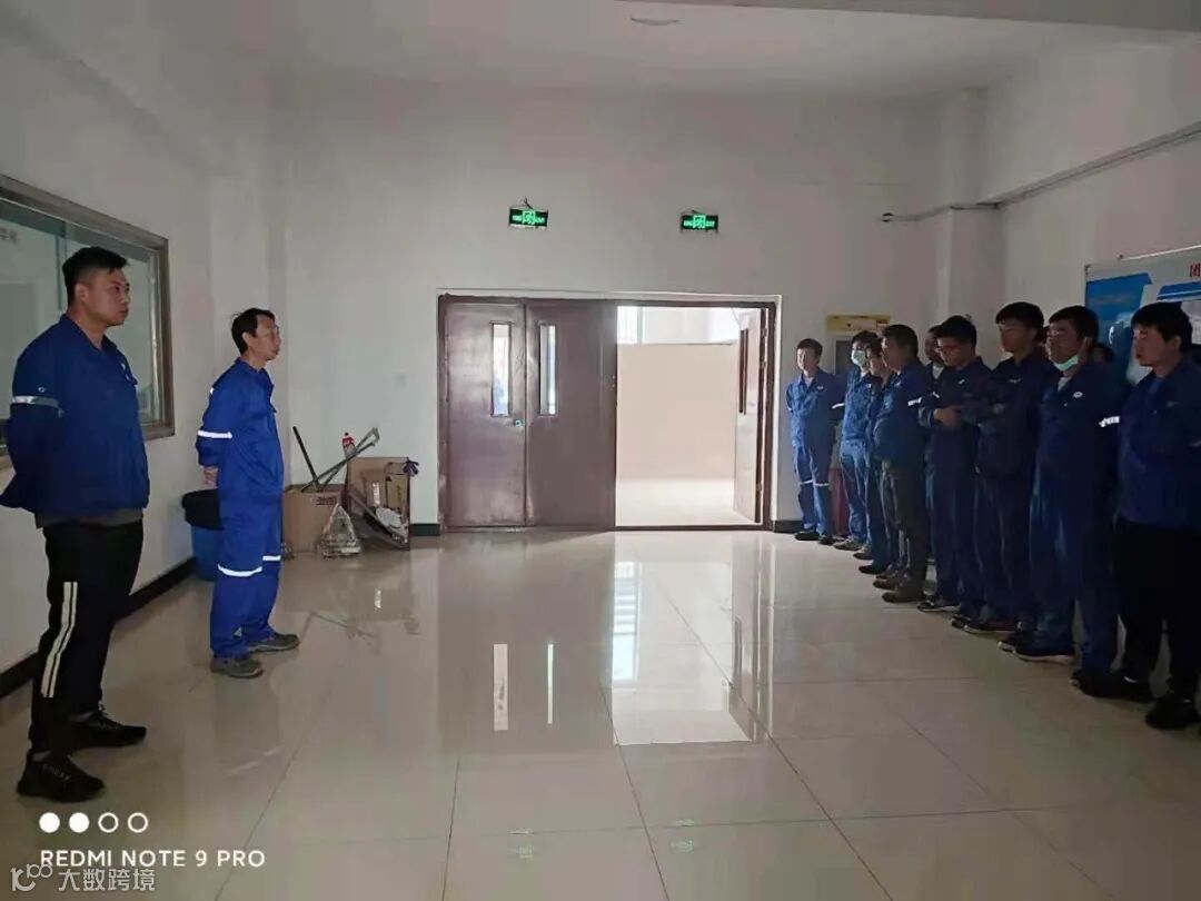 重装公司主要负责人在各车间班组班前会上通报事故案例,并结合公司实际情况,组织学习各岗位安全操作规程和岗位危险源辨识。