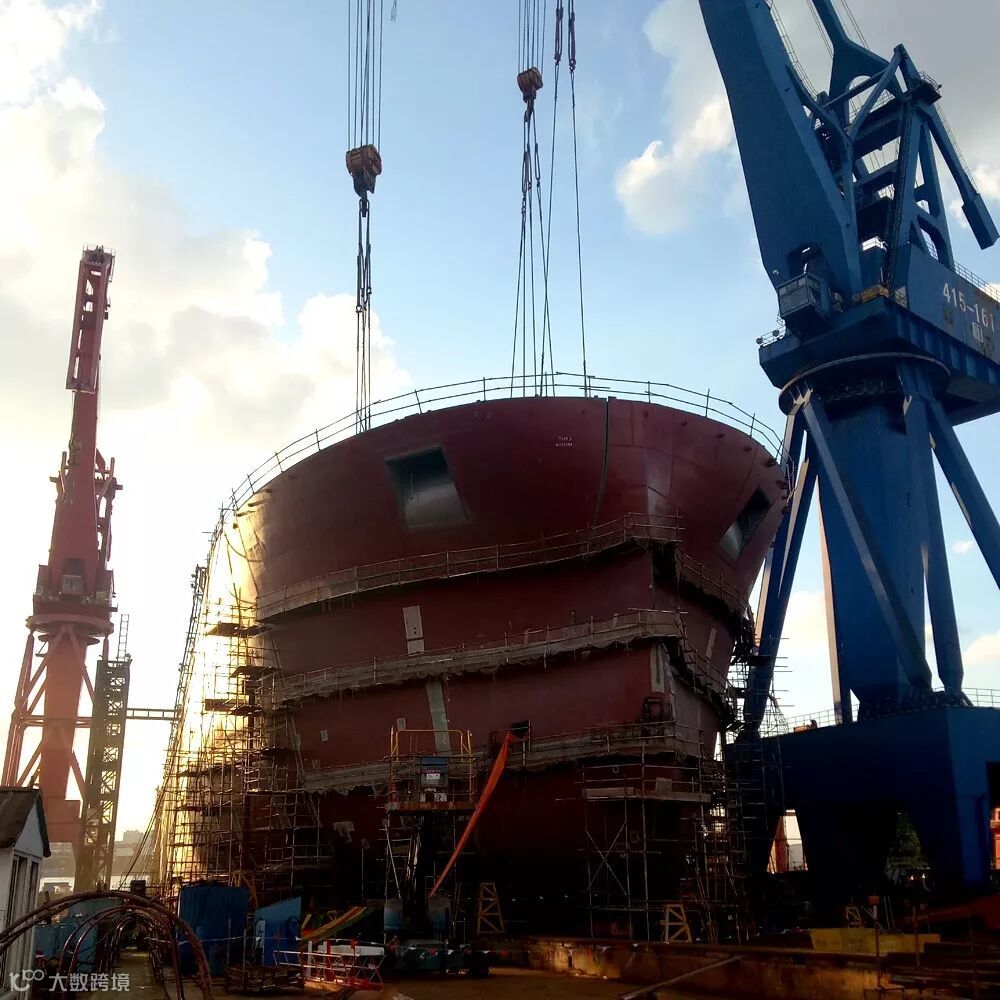 今年4月初开始船台搭载的49000吨化学品船首船于近日顺利完成主甲板接通节点。