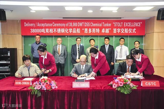 3月15日下午,公司为荷兰思多而特·尼尔森(Stolt–Nielsen)公司建造的全球最先进化学品船——38000 吨双相不锈钢化学品船“思多而特卓越”号在东华科技大厦举行交船签字仪式。