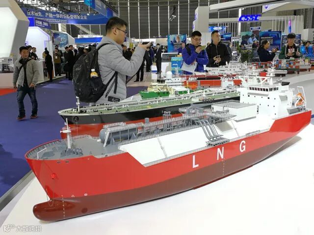 我公司参展的22000箱集装箱船、17.4万立方米LNG FSRU船、3.2万立方米LNG发电船和4.9万吨双相不锈钢化学品船等高新船型,激发了团员青年的自豪感,他们纷纷表示,要努力学习、认真工作,建造更多更好的高端产品。
