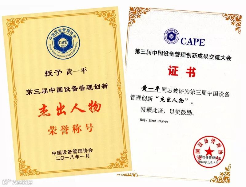 在黄一平和团队的共同努力下,公司获得了全国企业优秀设备管理单位等荣誉称号。