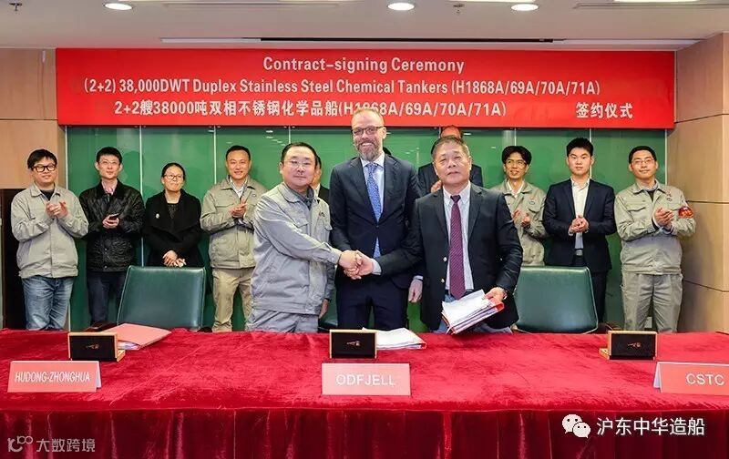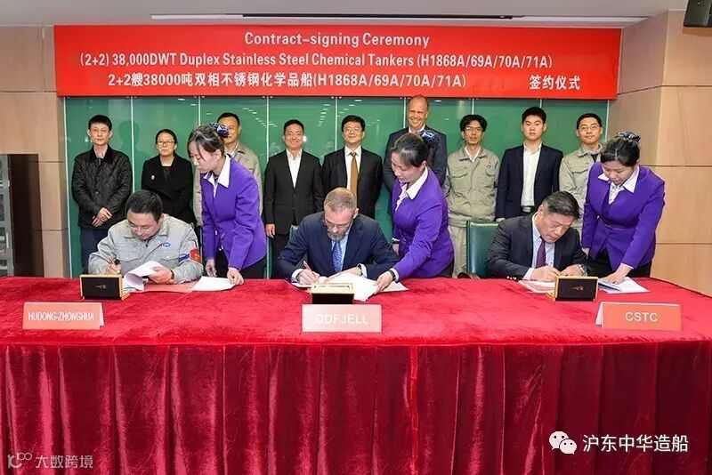 经过近半年努力,4月10日,公司与挪威著名化学品船运营商ODFJELL再次携手,签订2艘38000吨双相不锈钢化学品船建造合同。ODFJELL集团商务总监莫顿·阿尔布瑞克森、中船贸易公司业务六部高级专务王燕中和沪东中华副总经理迟本斌共同签署了合同。