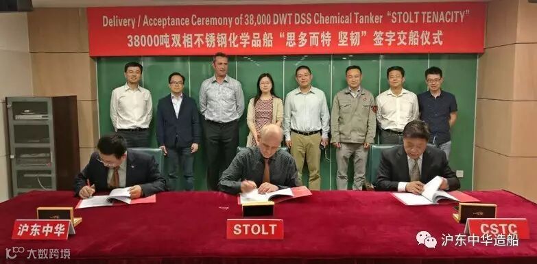世界顶级化学品船38000 吨“思多而特 坚韧”号5月26日在沪东中华签字交付。荷兰思多而特·尼尔森公司欣喜又多了一艘可为全球高端客户提供优质服务的船舶。