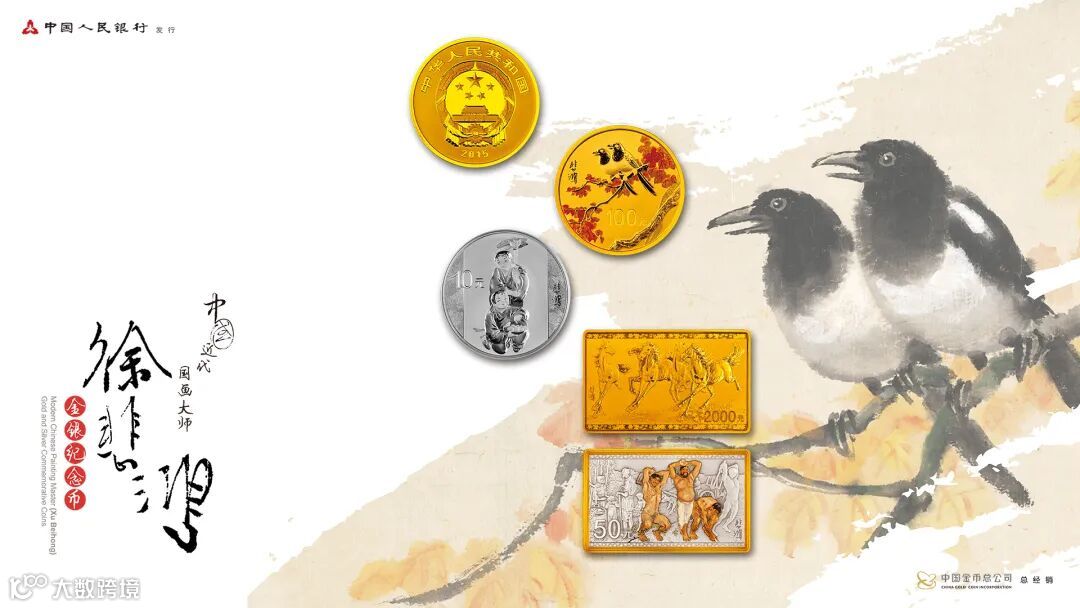 2015年中國人民銀行發行了中國近代國畫大師(徐悲鴻)金銀紀念幣,一套4枚。