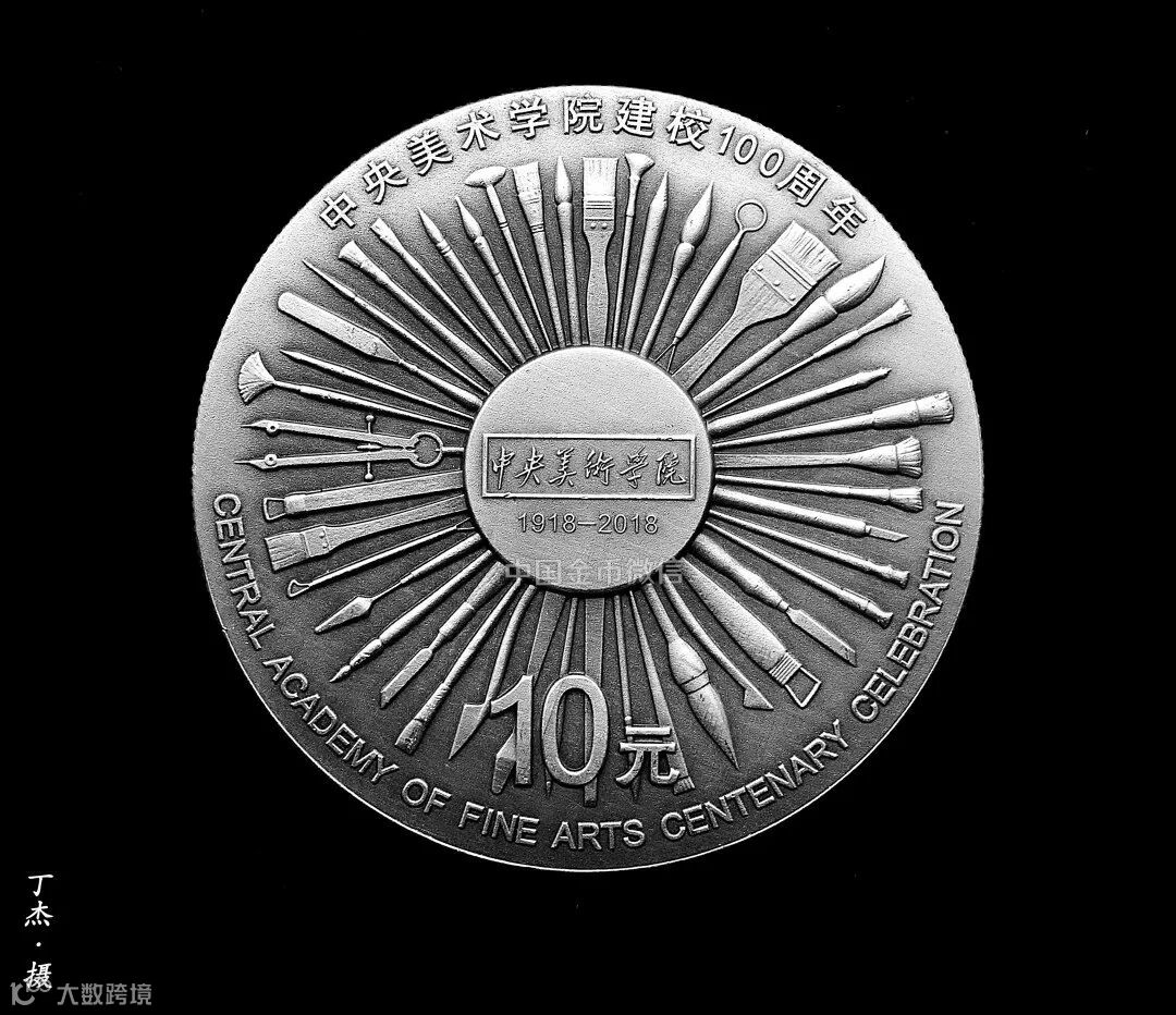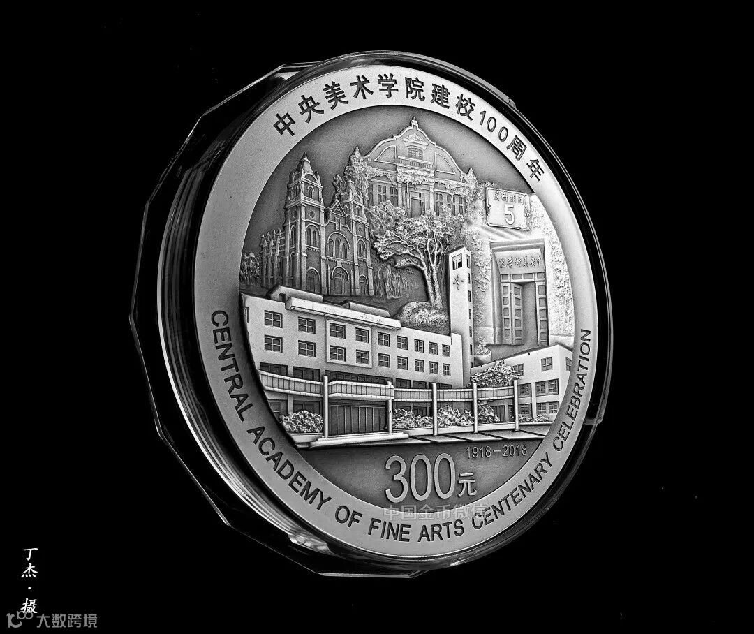 11公斤銀幣背面圖案整體上豐富飽滿、虛實結合,仿舊工藝的運用,恰如其分地體現了這所藝術殿堂的歷史滄桑感與厚重感。這枚幣不僅是央美百年發展歷程的縮影,更承載了央美的昨天、今天與明天。