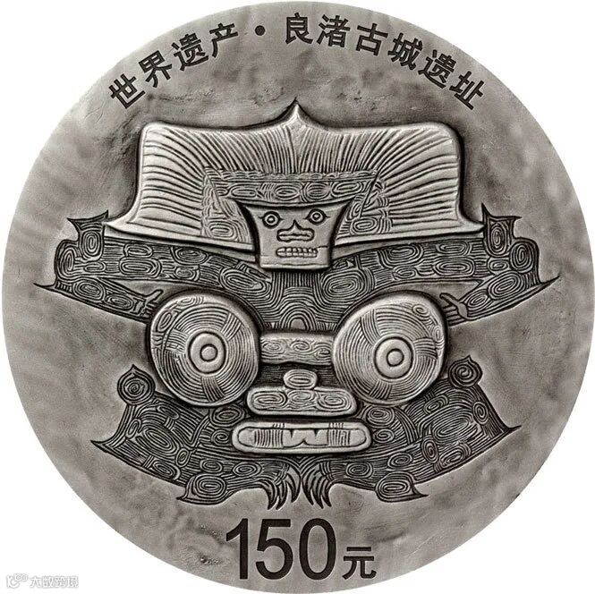 世界遺產(良渚古城文化)金銀紀念幣500克銀幣背面圖案以良渚文化神人獸面紋為核心設計項目。