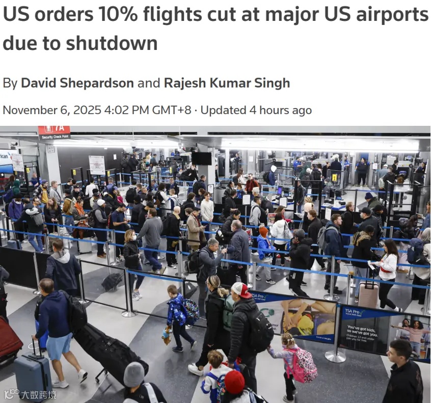 美国政府已停摆36天,对航空业造成严重打击。特朗普呼吁共和党立即结束“冗长辩论”,并强调“今晚就该开始通过法案”,以推动政府尽快重新开放。