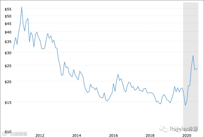 當銀價在今年早些時候的短短幾周內暴跌近40%時,其價格一度跌破12美元/盎司。這是自2011年8月高峰以來的最低點。隨後,白銀強勁反彈,一度刷新高點至略低於30美元的位置,報29.26美元。