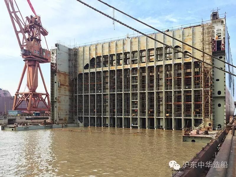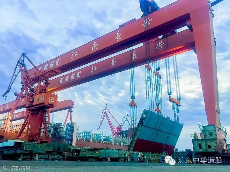 平台上,搭载部发力,一天内完成了2个超800吨总段的船坞吊装。