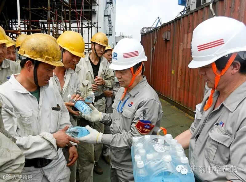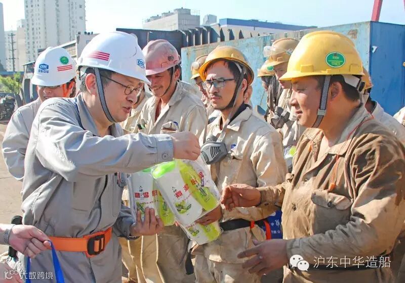 节节攀升的气温让所有人都体会到了骄阳的“威力”,千方百计保障职工正常有序工作、生活成为当前各级领导关心的头等大事。为将关怀和慰问及时传递给一线员工,2天来,上海市总工会党组成员、市纪委驻市总工会机关纪检组组长高黎萍,市总直属机关纪委书记张红,中船上海船舶工业有限公司工会主席崔启明,我公司领导陈建良、陈军、黄一平、黄成穗等马不停蹄地穿梭于各个生产区域,为一线人员送去了包括盐汽水、藿香正气水、仁丹、清凉油等在内的各类防暑降温用品,同时也为一线员工在酷暑中送去了一丝舒心的清凉。