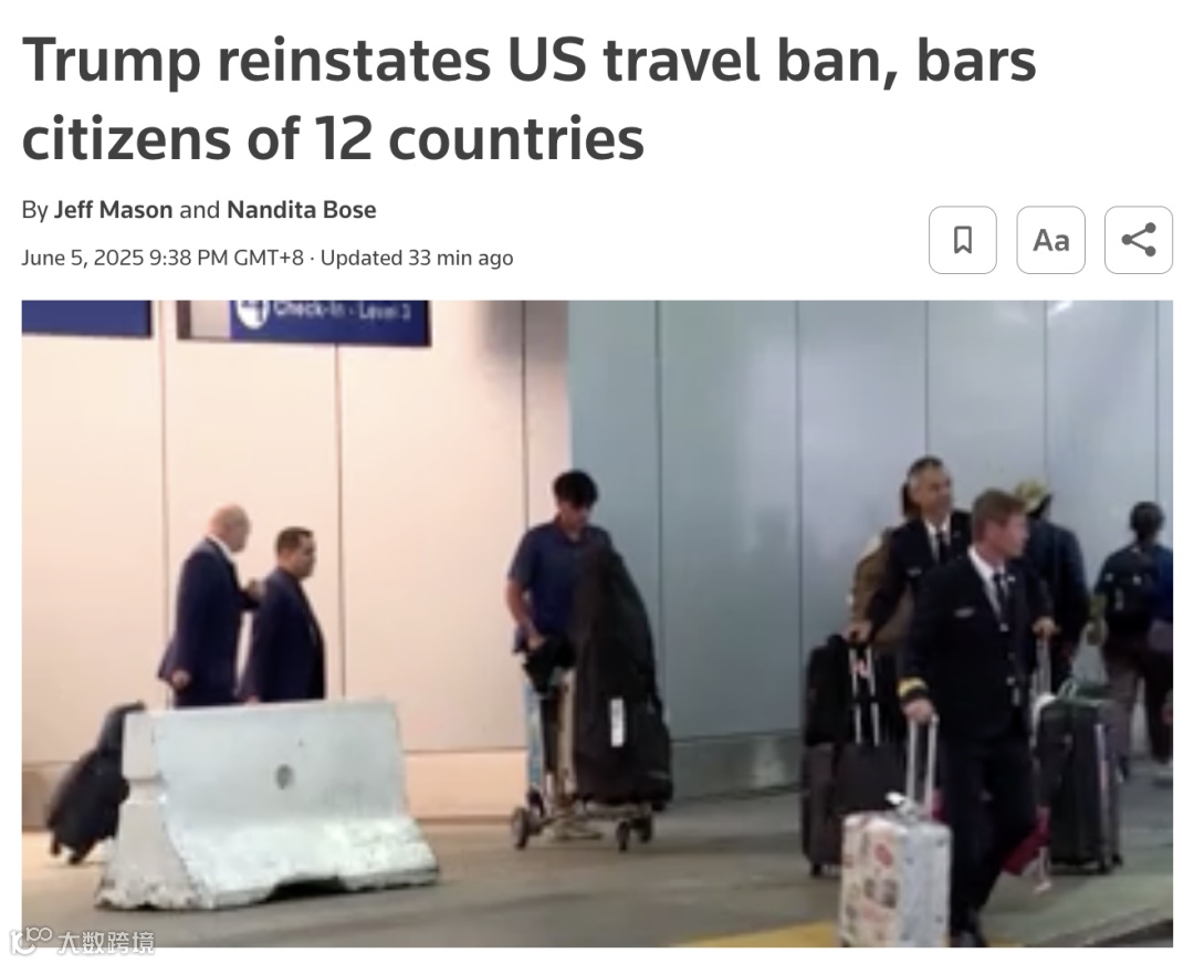 今年3月,路透社报道称,特朗普政府正在考虑对数十个国家实施旅行限制。