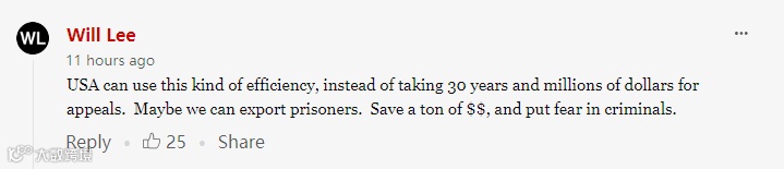 也难怪美国网友破防了,在美国死刑犯从定罪到执行的时间一般要6至16年,在某些州甚至长达20-25年。