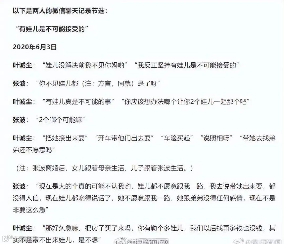 据报道,张波隐瞒已经已婚并有两个孩子的事实,与叶诚尘建立了不正当男女关系。