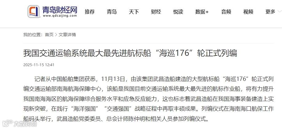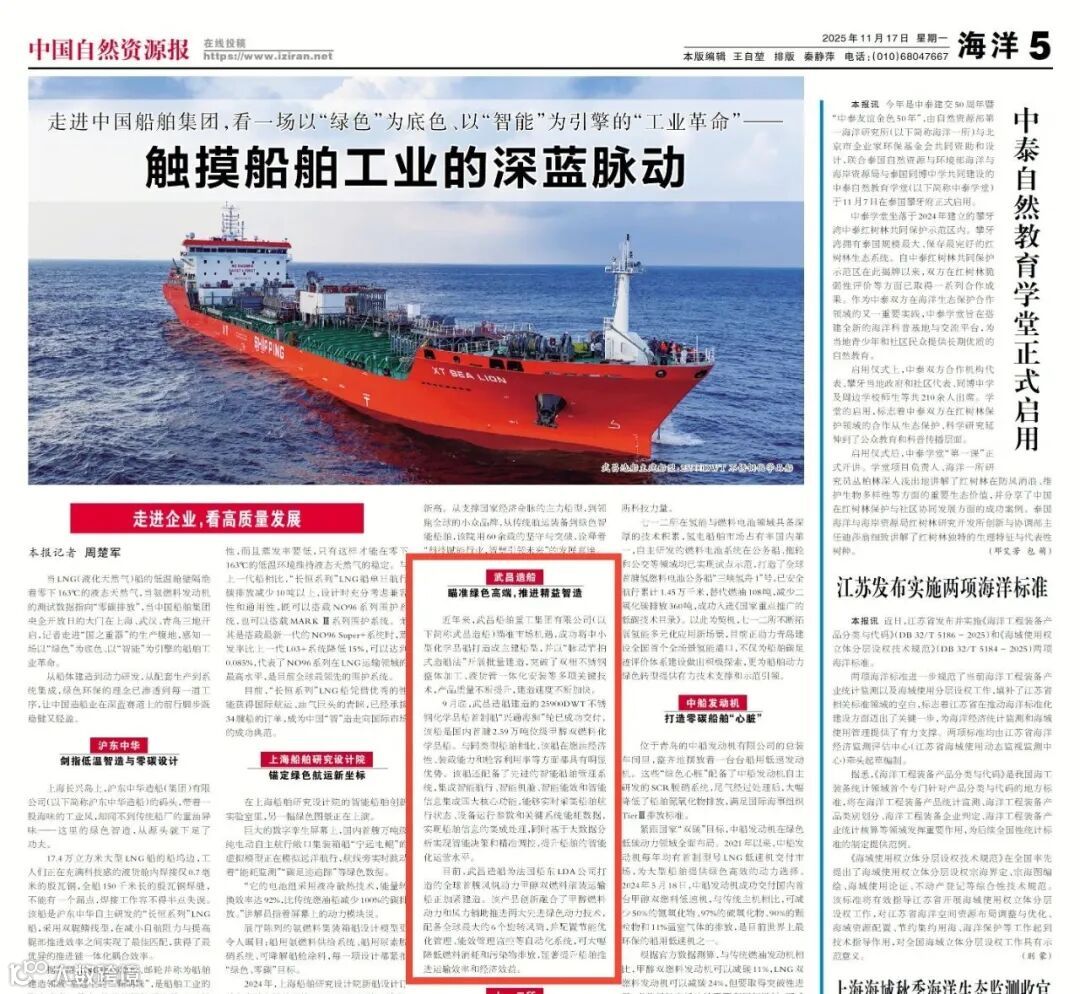 中国自然资源报《走进中国船舶集团,看一场以“绿色”为底色、以“智能”为引擎的“工业革命”——触摸船舶工业的深蓝脉动》(2025/11/17)