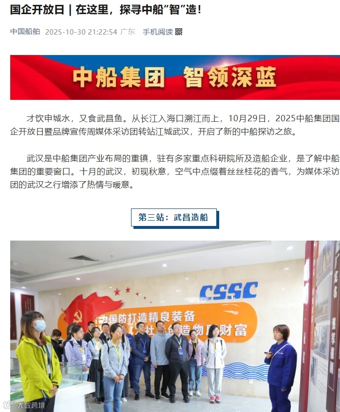 中国交通报《群星闪耀 智领深蓝——2025年中船集团国企开放日暨品牌宣传周见闻》 (2025/11/4)
