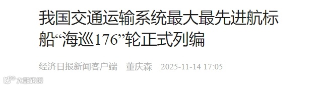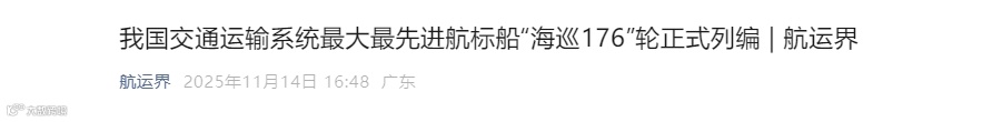 “海巡176”轮已正式列编交通运输部南海航海保障中心。