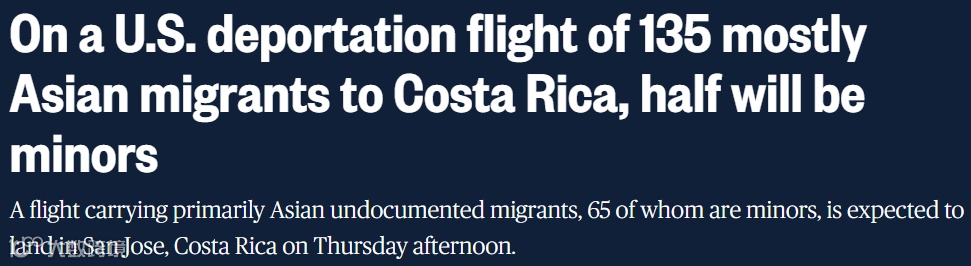 一架载有135名无证移民(主要来自亚洲)的驱逐航班周四(20日)离开美国,