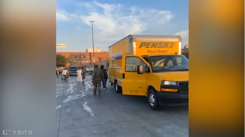 社交媒体上流传的照片显示,Penske租赁卡车后门打开,数名持枪、身着制服的特工跳出。