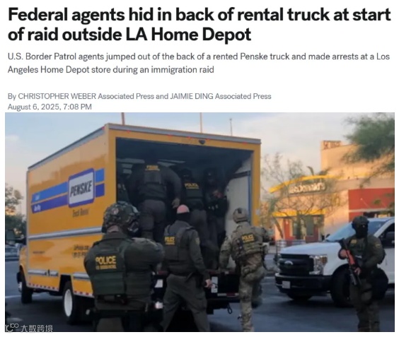 本周三,ICE特工在洛杉矶一家家得宝门店外发起“特洛伊木马”式突袭,抓捕多名非法移民。而就在不久前,法院刚重申禁止无差别执法的禁令。
