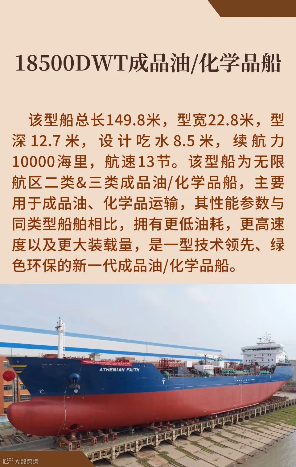 10月12日,武昌造船为希腊Athenian Sea Carriers公司建造的18500DWT成品油/化学品船3号船顺利完成离厂节点,正式进入交付前关键阶段,标志着该船向着最终交付迈出坚实一步。