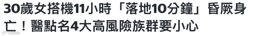 李女士的情况并非孤例。去年10月14日,一名来自福建的40岁男子在乘坐飞机仅2小时后,因为长时间未起身活动,下机时急忙站起取行李,结果导致腿部血栓脱落,最终引发肺栓塞不幸去世。