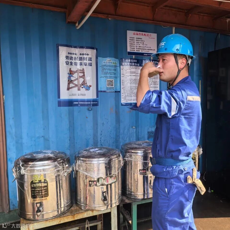 为保障一线生产,切实做好夏季防暑降温工作,今年夏季,公司已在码头、高跨、船台板房等46个生产现场连续54天配送酸梅汤,早、中、晚累计送达11652桶,为一线员工送出4100杯绿豆汤。